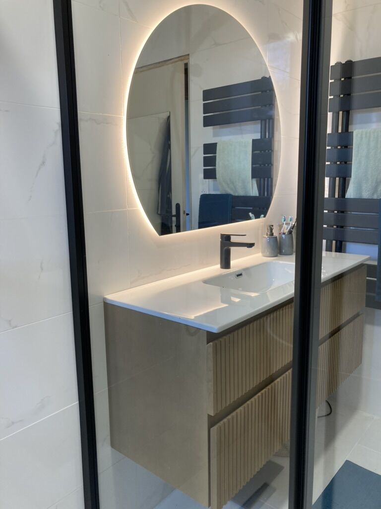 Salle de bain et douche de 6m² Lieu : Saint Jean de LuzSans augmenter la surface, le défi était ici de tout rentrer dans moins de 6m2, car les propriétaires ne souhaitaient pas choisir entre douche et baignoire.